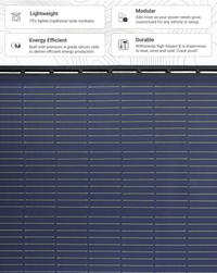 Our FLEX-Si Series - The budget-friendly version that gives you the most bang for your buck. At less than a quarter-inch thick, these panels will give you years of power and can be installed on any flat or curved surface.